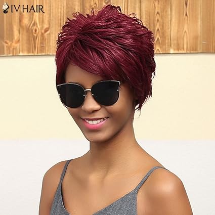 Wigstyle Pelo Corto Capas Peinado Esponjoso Side Bang Sin Tapa Peluca De Cabello Humano Amazon Es Belleza